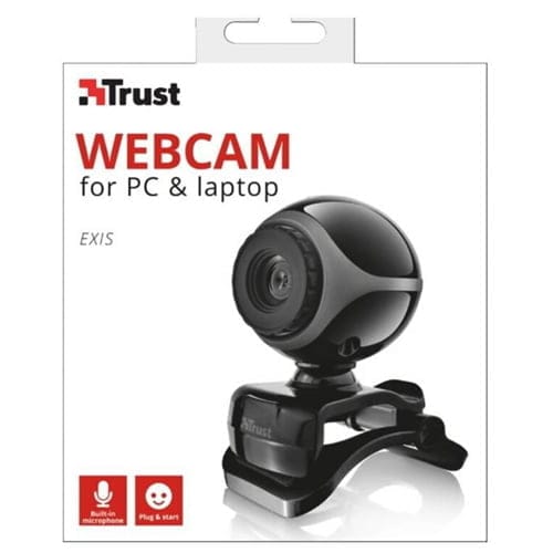 Nombre del producto Camara Web Trust Exis Negro Descripción Resolución de sensor de 640 x 480/ Ideal para usar con Skype, Cortana, etc. conéctela y empiece a utilizarla/ Micrófono incorporado para una mejor calidad del sonido/ Práctico pedestal, ideal para pantallas de ordenadores portátiles y superficies planas/Plug & play, no requiere instalación de controlador Atributos – TRM_INGRESO –0 Canales de memoria –Canales de memoria