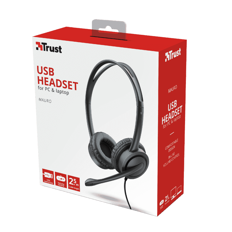 Diadema Trust USB Mauro Con Microfono Negro