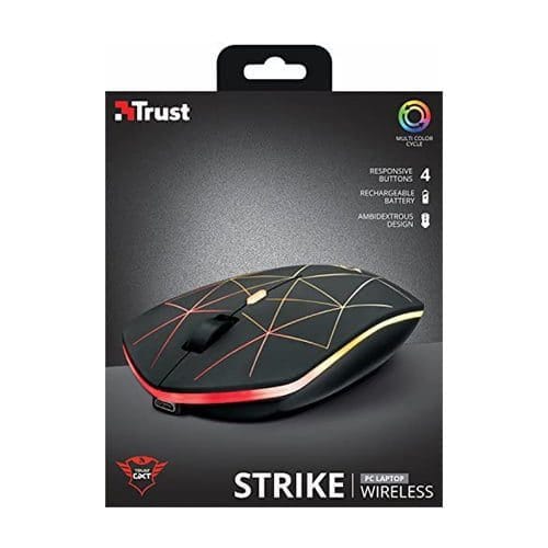 Nombre del producto Mouse Gamer Inalambrico Usb Trust Gxt 117 Strike (600-1400 dpi) con batería recargable Descripción Ratón inalámbrico para juegos con batería recargable incorporada y tapa superior iluminada – Tapa superior con iluminación de colores continuamente cambiante – Batería recargable integrada, con autonomía de hasta [30 horas] de juego-Botón de selección de velocidad (600-1400 dpi) – 4 botones de respuesta-Tapa superior de goma para un agarre firme-Ambidiestros-Cobertura inalámbrica de 8 m – La iluminación LED se puede encender o apagar. Atributos – Canales de memoria – Canales de memoria